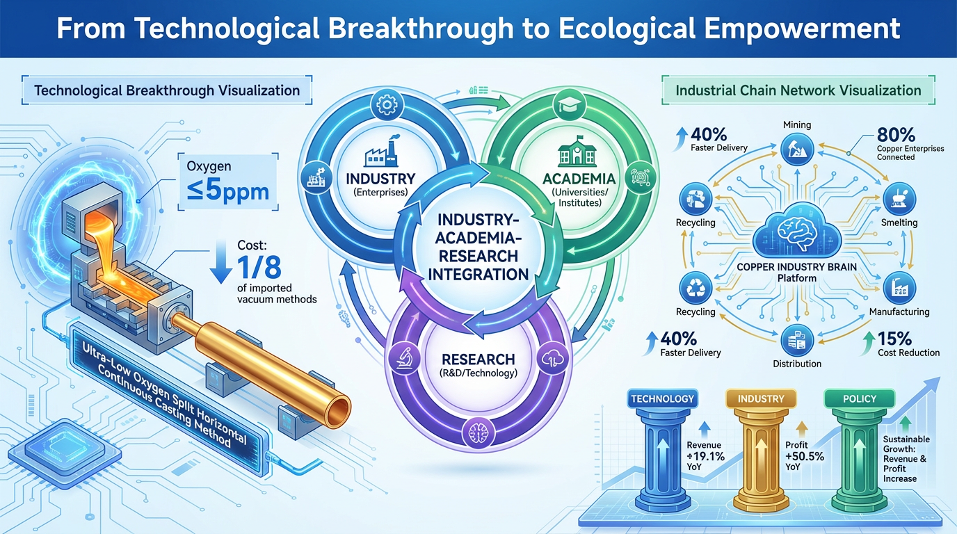 Scopus cooperationis ad totam catenam dilatatur. Inceptis aeris Jiangxi aedificavit "Aerarium Industry Cerebrum" connectens LXXX% conatibus aeneis urbis, facultatem coordinationem et facultatem communicandi per magnas analysin data. Hoc suggestum aditus SMEs permittit ut participet summus finis certationis: cum una societas recipit ordinem eximium, ratio sponte scindit inter plures officinas ad productionem parallelam, minuendo tempus partus per 40% et sumptus per 15%. In consilio anterius, "Copper Industry High-Quality Development Exsecutio Plan (2025-2027)" aperte sustinet consortia innovationis aedificandae, studens vincere 10-12 "bottleneck" technologias intra triennium. Haec tria dimensiva "technologia-industriae-consilii" synergia contulit ad industriam aeris Jiangxi consequendam 19.1% annos in annos reditus incrementum et 50,5% lucrum in tribus primis partibus 2025 auctum.