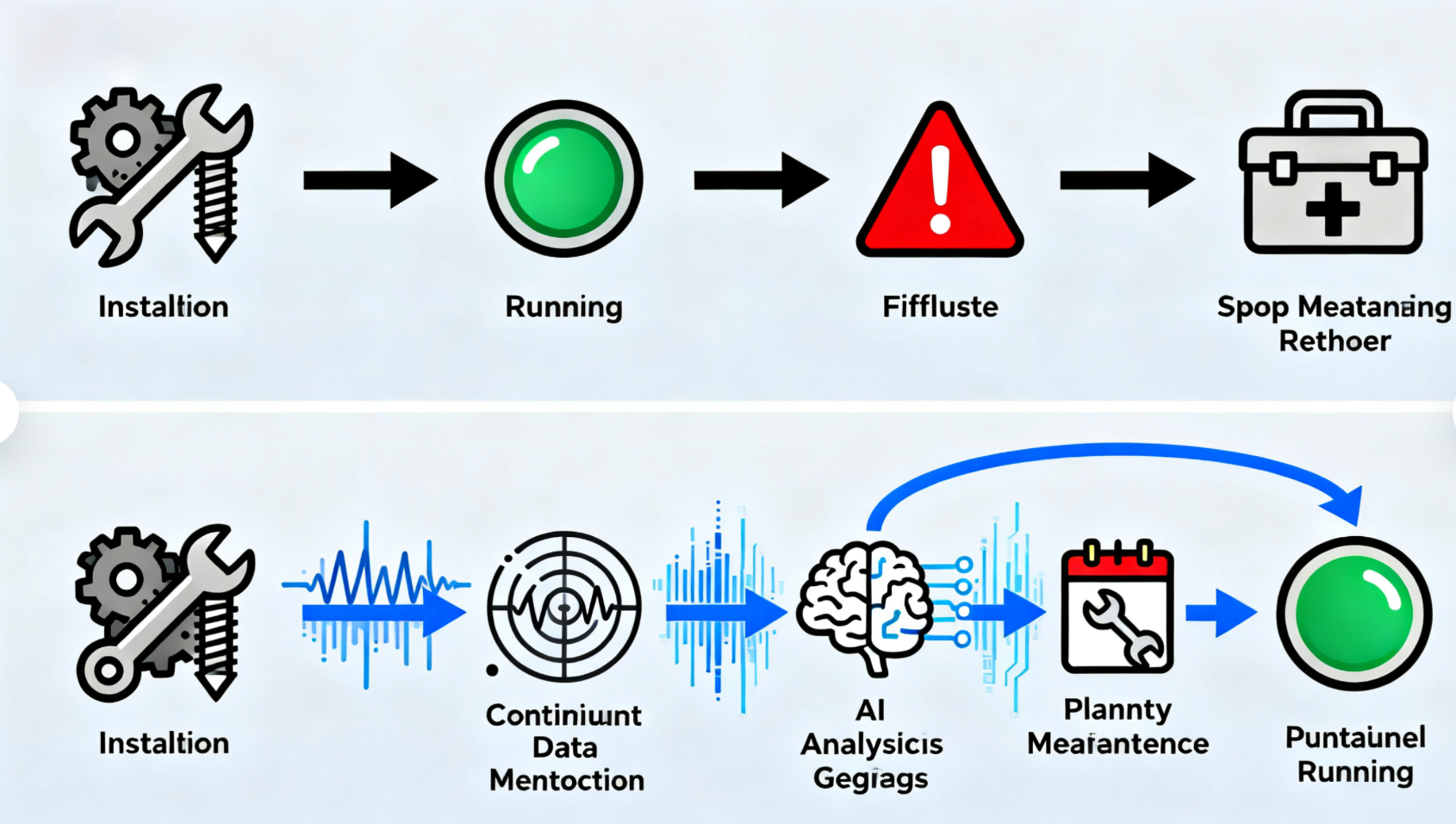 Caption: Evolutio exemplorum conservationis: ex defectione passiva responsionis ad proactivum, interventus predictive data-substructio, ratio firmitatis valde amplificandae.