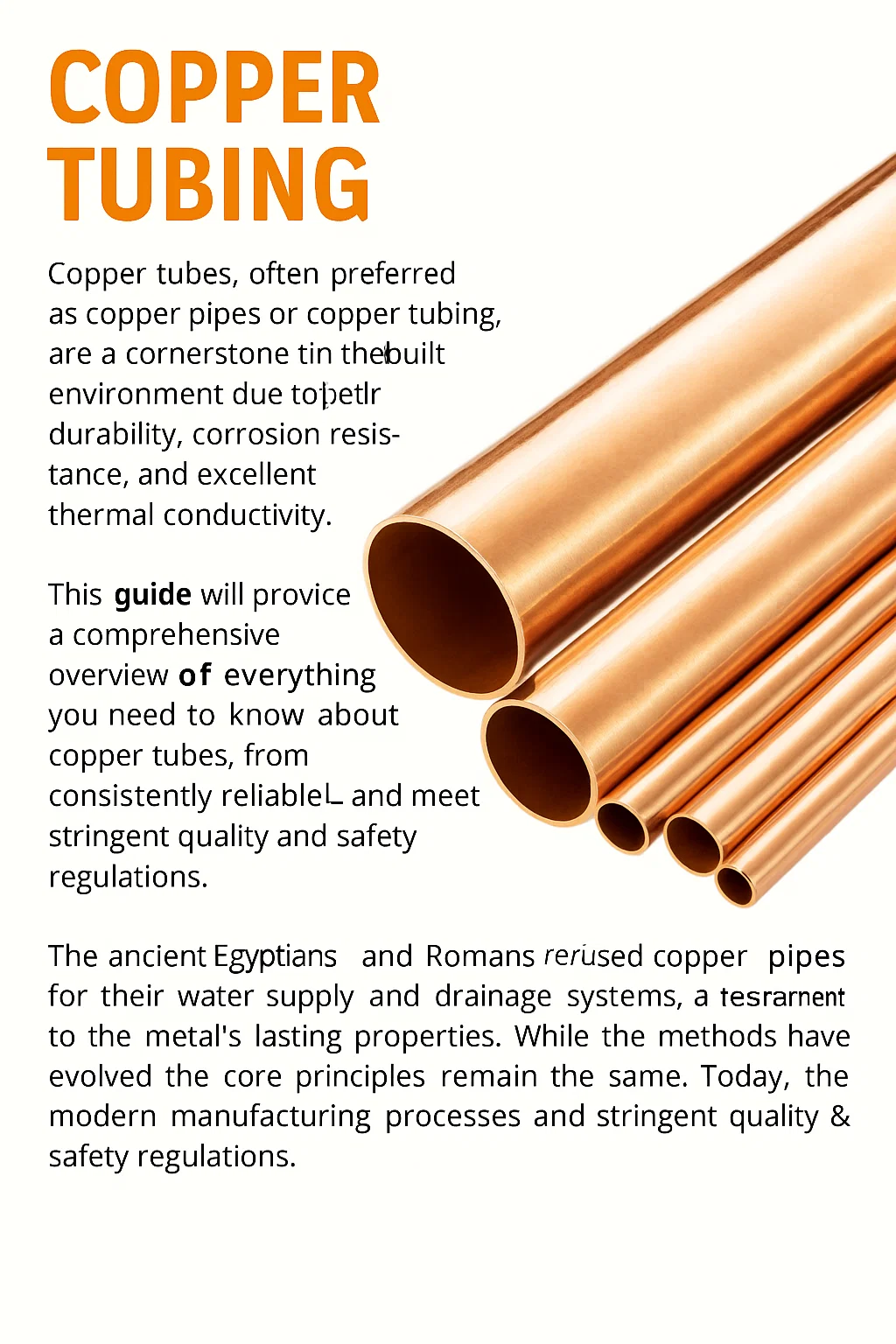 Usus aeris ad transportandum aquam dies retro millia annis. Antiqua Aegyptios et Romani usus aeris foramina aquas et INCILE Systems, testamentum ad metallum manente proprietatibus. Dum modi evolved, in Core principiis manere idem. Hodie, modern vestibulum processus et mensuris exercitia ut aeris fistulae constanter reliable et occursum restrictius qualitas et salus ordinationes, faciens eos essentialem component aedificavit environment.