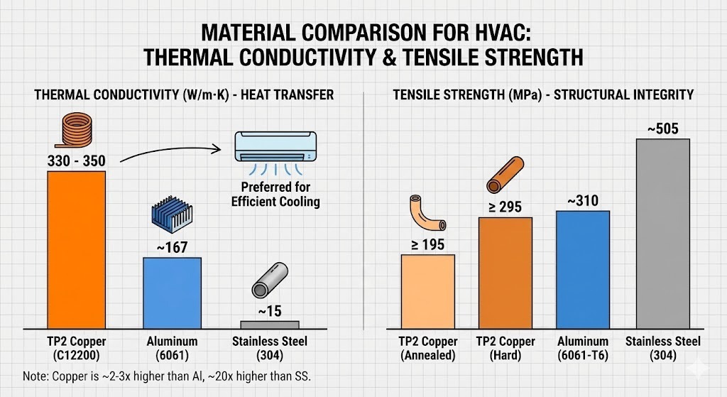 TP2 aeris iacuit naturalem, patinam tutelam elementis expositam. Dissimilis ferrum, non rubigo. In plumbing et HVAC, hoc significat tubum non attenuare vel "pinholum pinum" facile per 20-30 annum restare.
